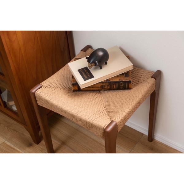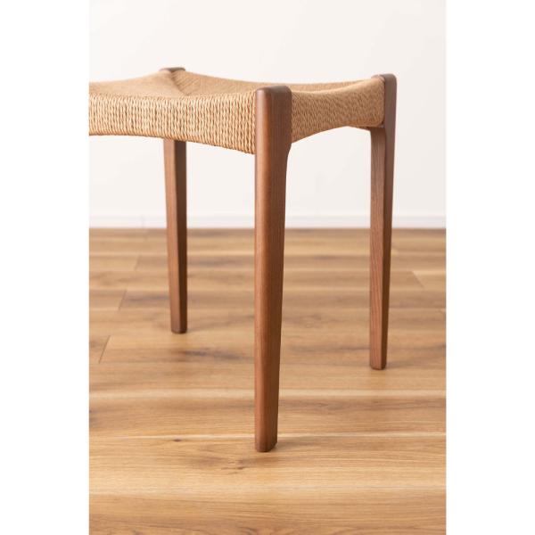 ●ペーパーコードの特徴/1.樹脂を含ませ撚り合わせて作られた紙紐。非常に丈夫な素材で耐久性に優れ、デザイナーズ家具にも使用される高品質な材質。2.1本1本がしっかりとコーティングされているので汚れが付きにくくお手入れも簡単。3.使い始めはやや硬く弾力性のある素材。使うごとに少しずつ体の形に馴染み、包み込まれるような座り心地へと変化していきます。4.1本1本の編み目に隙間があるので通気性が良く、夏場なども蒸れずに快適。また、冬場は温かい空気が通るので座面が適度に温められるのでオールシーズン快適。5.ペーパーコード自体が軽い素材なので、スツール全体も他のスツールに比べて軽量な仕上がり。