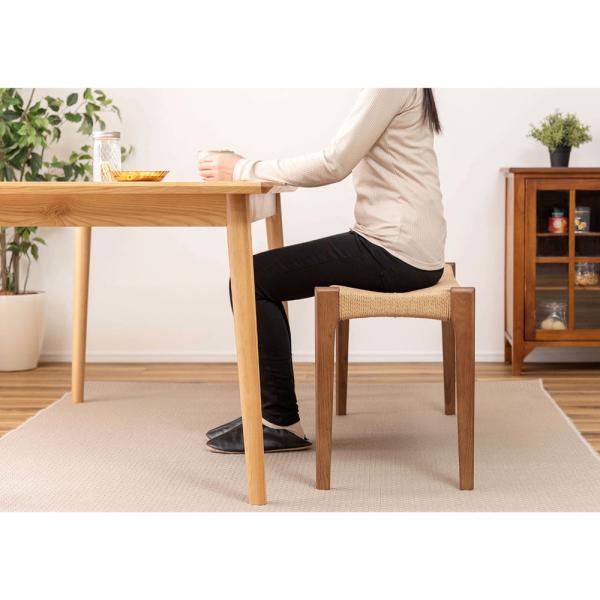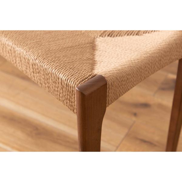 ●ペーパーコードの特徴/【1】.見た目以上の耐久性/ペーパーコードの見た目は紙袋の紐とよく似ています。なので「しばらくしたら破れてしまうのでは・・」と不安に思う方もいるかもしれません。ですがペーパーコードには、繊維が長く破れにくい紙が使われています。そんな頑丈な紙を3本撚り合わせて作られているので、見た目以上の耐久性を持っていて革や布貼りと同じくらい頑丈だと言われている素材。【2】.汚れが付きにくい/ペーパーコードは樹脂でコーティングされているので、ファブリックの物と比較すると汚れが付きにくいと言われています。汚れた時は、すぐ拭き取るようにすればOK。【3】.使うほどに身体に馴染む/初めはピンとはられたコードも、座るごとにお尻の形に合わせて変化していき、だんだんと包み込まれるような座り心地に。長時間座っても疲れにくいので、ワークチェアとしてもオススメ。【4】.オールシーズン快適/網目に隙間があるので通気性が良く、夏は熱がこもらず湿気で蒸れにくく、冬は暖房で暖まった空気が通るので座面がひんやりしにくいので1年中快適。【5】.軽量/無理なく簡単に持ち上げられるくらいの軽さ。掃除の際も楽に動かせるので家事がスムーズに捗ります。椅子を引いた時の音が無いのも嬉しいポイント。【6】.温もりを感じるデザイン/天然木とペーパーコードの組み合わせは温かみのある印象が強く感じられます。北欧テイストと合わせられる事が多いですが、実は和なインテリアとも好相性。