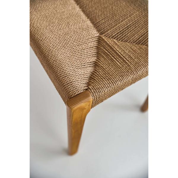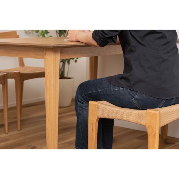 ●ペーパーコードの特徴/【1】.見た目以上の耐久性/ペーパーコードの見た目は紙袋の紐とよく似ています。なので「しばらくしたら破れてしまうのでは・・」と不安に思う方もいるかもしれません。ですがペーパーコードには、繊維が長く破れにくい紙が使われています。そんな頑丈な紙を3本撚り合わせて作られているので、見た目以上の耐久性を持っていて革や布貼りと同じくらい頑丈だと言われている素材。【2】.汚れが付きにくい/ペーパーコードは樹脂でコーティングされているので、ファブリックの物と比較すると汚れが付きにくいと言われています。汚れた時は、すぐ拭き取るようにすればOK。【3】.使うほどに身体に馴染む/初めはピンとはられたコードも、座るごとにお尻の形に合わせて変化していき、だんだんと包み込まれるような座り心地に。長時間座っても疲れにくいので、ワークチェアとしてもオススメ。【4】.オールシーズン快適/網目に隙間があるので通気性が良く、夏は熱がこもらず湿気で蒸れにくく、冬は暖房で暖まった空気が通るので座面がひんやりしにくいので1年中快適。【5】.軽量/無理なく簡単に持ち上げられるくらいの軽さ。掃除の際も楽に動かせるので家事がスムーズに捗ります。椅子を引いた時の音が無いのも嬉しいポイント。【6】.温もりを感じるデザイン/天然木とペーパーコードの組み合わせは温かみのある印象が強く感じられます。北欧テイストと合わせられる事が多いですが、実は和なインテリアとも好相性。
