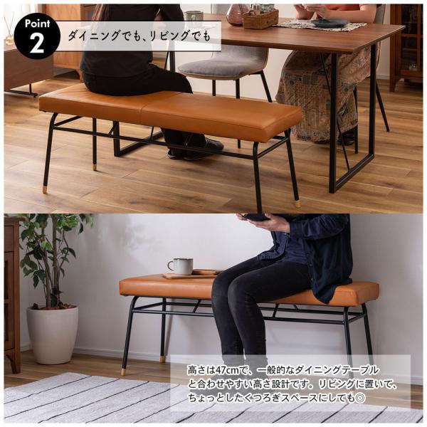 ●天然の牛革が高級感を漂わせ、シンプルながらデザイン性の高いスチール脚を組み合わせたダイニングベンチ。