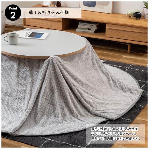 ●円形こたつ、正方形こたつのどちらにも対応可能。※適用天板サイズ:80×80cm以下。