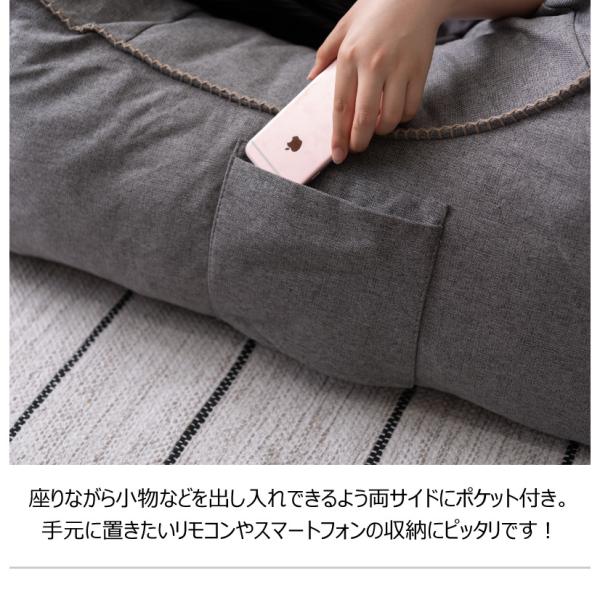 ■便利なサイドポケット/座りながら必要なものをサッと出し入れができるよう、両サイドにはポケットをあしらいました。手元に置いておきたいリモコンやスマートフォンを収納しておくのにピッタリです。