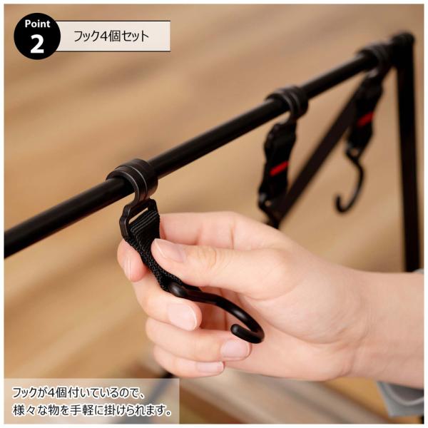 ●フックが付いているので(4個)、様々な物を手軽に掛けることができます。