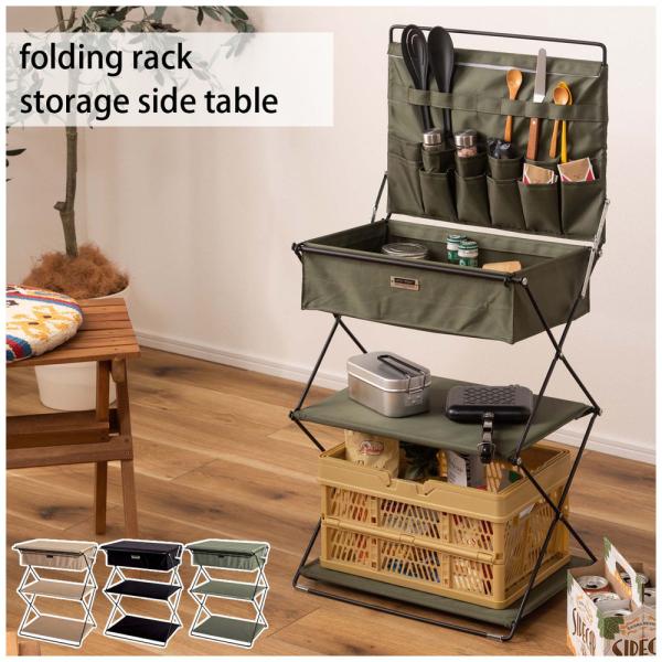 ●アウトドア・キャンプからソファやデスク横での使用まで、多彩に使える機能豊富なフォールディングラック。