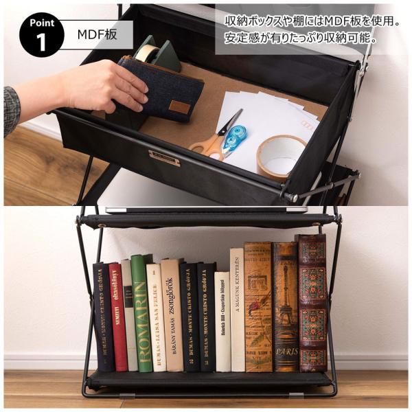 ●収納ボックスや棚にはMDF板を使用。安定感が有りたっぷり収納可能。
