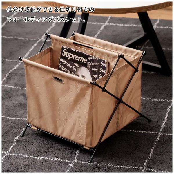 ●仕分け収納ができる仕切り付きフォールディングバスケット。