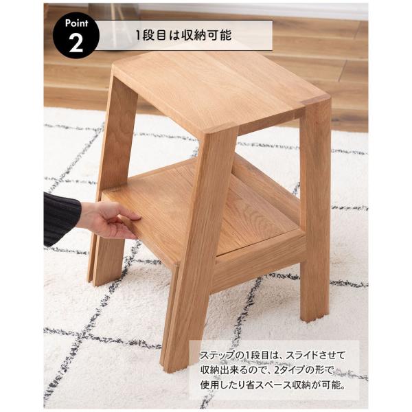●ステップの1段目はスライドさせて収納出来るので、2タイプの形で使用したり省スペース収納が可能。