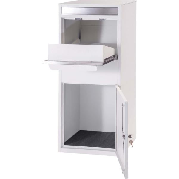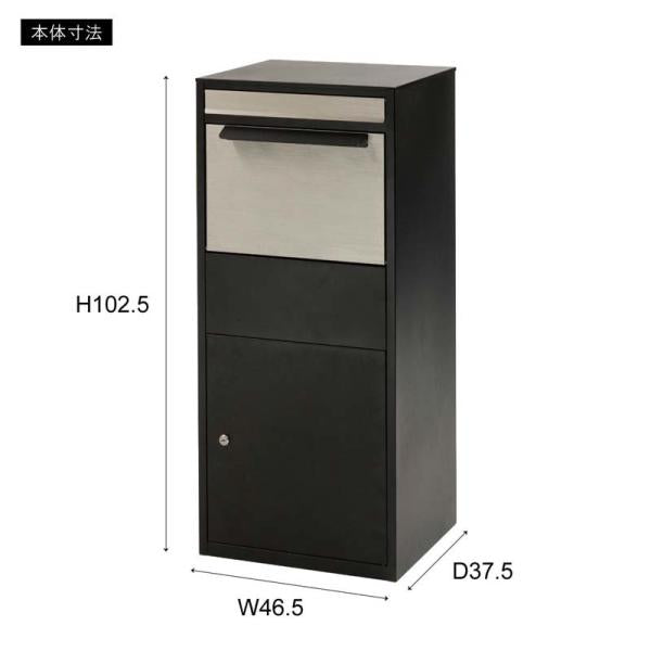 ■スタイリッシュな鍵付きデリバリーボックス/ブラック&シルバーとホワイト&シルバーのシンプルなカラーリングがおしゃれなデリバリーボックス。小さな郵便物から大きな宅配物まで、幅広いサイズに対応しており、受取口には施錠が行えます。年々利用者が増えるネットショッピングもコレ1台で安心してお楽しみいただけます。