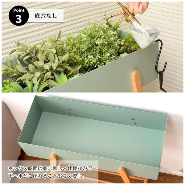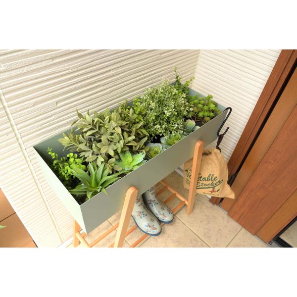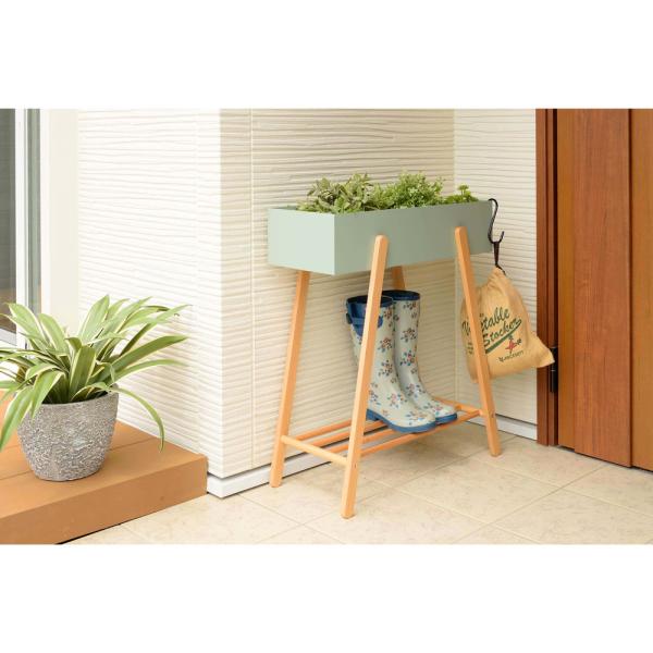 ●プランター下段には天然木の棚が付いているので小物類の収納に便利。