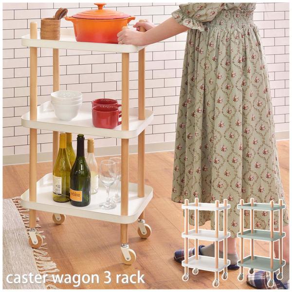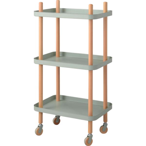 ●全体的に丸みのある優しいフォルムが特徴的なキャスター付き3段ワゴン。
