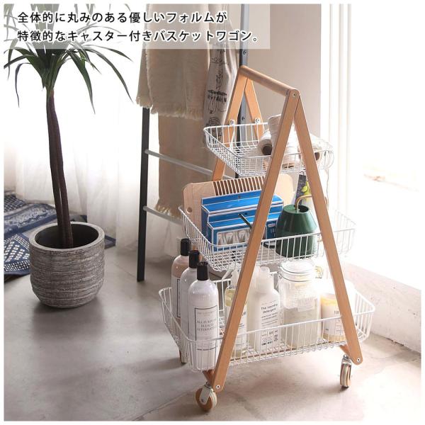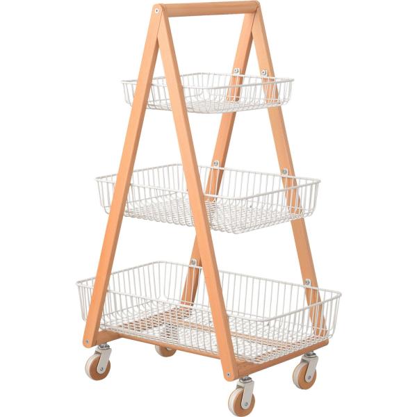 ■バスケットワゴン/三角形のデザインが愛らしい、キャスター付きのバスケットワゴン。リビングルームのデザイン収納ワゴンとして、キッチン小物を入れたキッチンバスケットワゴンとして、幅広く使えるバスケットワゴンです。