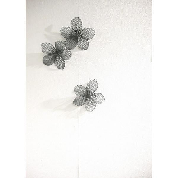 お花の形をしたアイアンメッシュ壁飾りです。空いている壁のスペースに飾って素敵にデコレーションしましょう!3個、6個と複数飾ると素敵なウォールアートの出来上がり!重さも軽く、ピン1個で簡単に取り付け可能です。和・洋・モダン、どんなお部屋にもあわせやすいですよ!お部屋のちょっと空いている壁面に如何ですか?サイズ