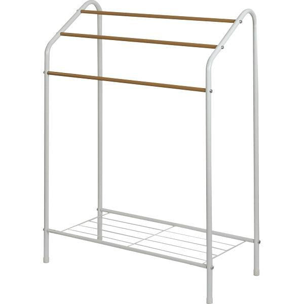 便利な棚付きのタオルスタンドです。タオル等を干した後、下棚にたたんで収納できます。サイズ